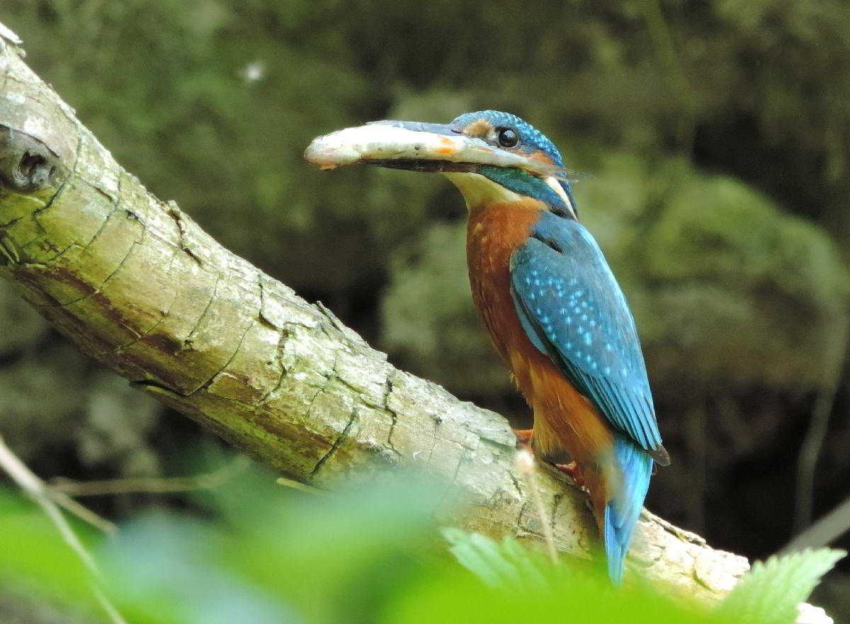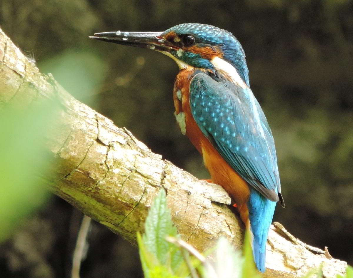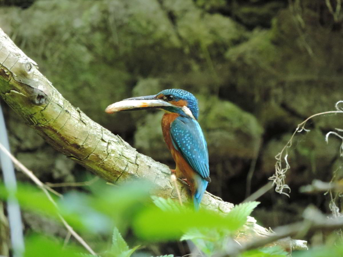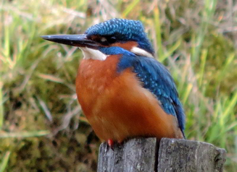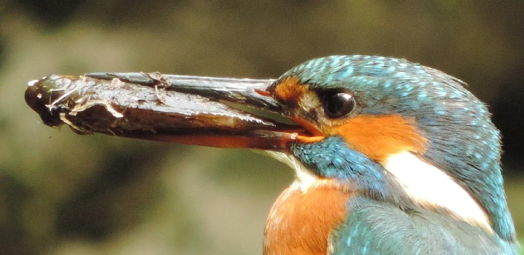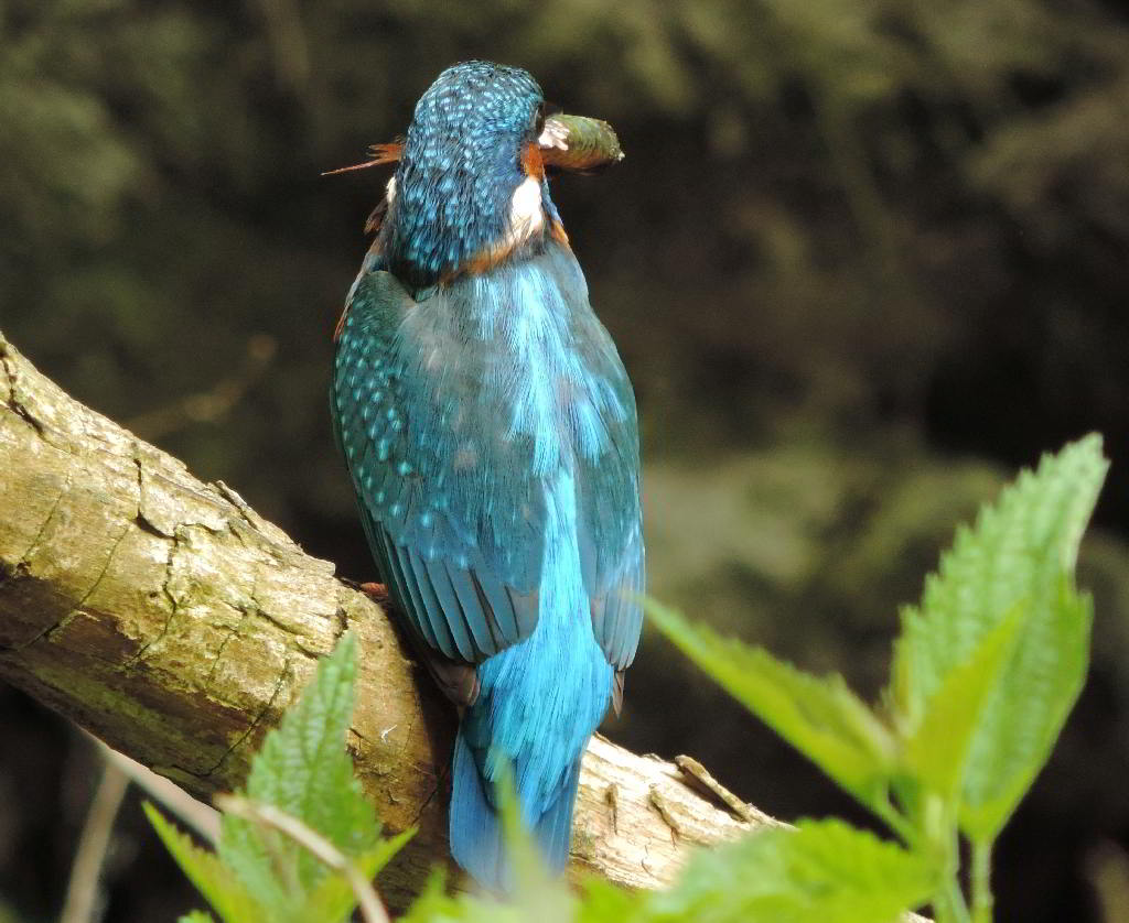Und plötzlich höre ich wieder das vertraute zieh-zieh-zieh, nur viel schneller und nicht aus dem Nest, sondern hinter mir. Ich drehe mich um, um den Rufer zu suchen. Dabei verpasse ich den Abflug des anderen Eisvogels aus dem Nest. Beide flogen 50 bis 60 Meter bachaufwärts, landeten auf einem Zweig am Ufer, drehten sich sofort um und schauten zurück in meine Richtung. Klar, daß sie mich gesehen hatten. Das veranlaßte mich, volle Deckung hinter einer riesigen Weide mit mehreren Stämmen zu suchen und auf die Rückkehr zu warten. Das zog sich aber hin, und ich wollte schon den Heimweg antreten. Plötzlich sind beide Eisvögel wieder da, sitzen kaum 5 Meter vor mir lautlos vor der Niströhre und sichern eine zeitlang in alle Richtungen. Und ich schaue in Schockstarre zu. Dann geht alles ganz schnell. Er fliegt zum Nest und muß brüten. Sie fliegt den Bach hinab. Am Baumteller ist wieder Ruhe eingetreten. Und ich weiß jetzt, wann die Ablösung am Brutplatz erfolgt. |