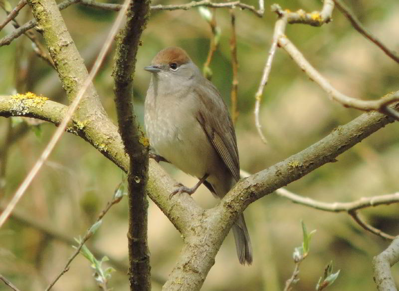 Ein Mönchgrasmückenweibchen und ein Männchen (rechts) -