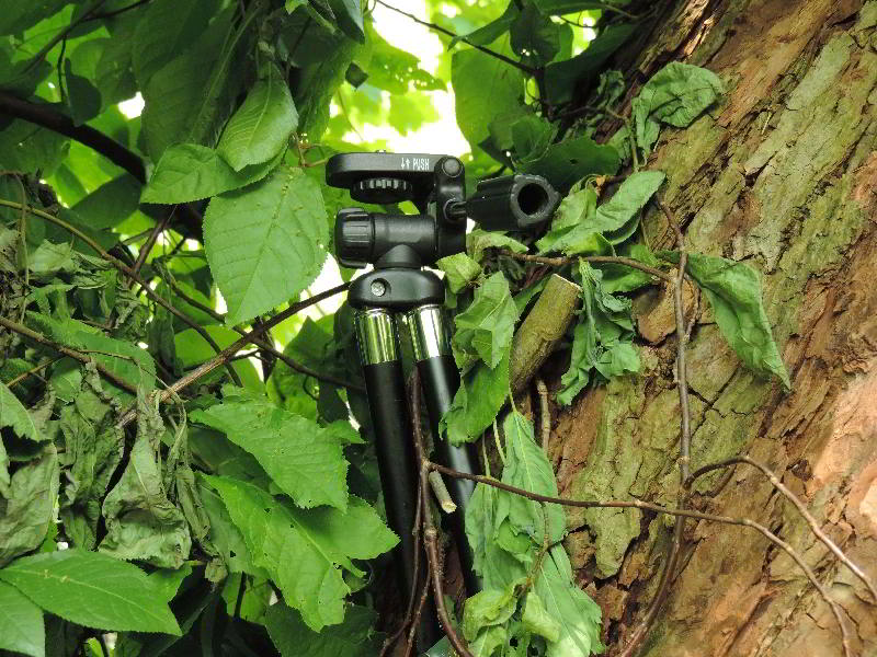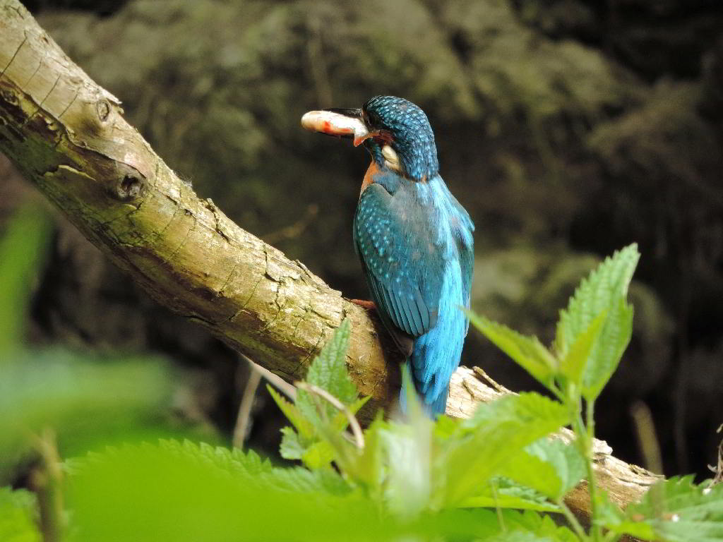 Mi 11.05.2016: Vielleicht beginnt am 14.05.2016 die nächste Brut. Ist dann um den 05.06.2016 herum die nächste Fütterung zu sehen? Do 12.05.2016: Fr 13.05.2016: Nun war meine Grüntarnung so dicht geworden, daß mich die Eisvögel nicht mehr sehen konnten. Leider hatte ich dadurch aber nur noch einen Tunnelblick auf einen kleinen Teil das Baumtellers, aber wenigstens auf eine Stelle, auf der sie gerne saßen. Ein Stativ wäre gut, ließ sich aber wegen der Bodenbeschaffenheit nicht aufstellen. Und mit einem Einbein kam ich nicht zurecht. Zu Hause hatte ich ein kaputtes kleines Stativ mit nur noch zwei Beinen. Das war zwar Schrott, aber ich konnte mich bislang nicht von ihm trennen. So schraubte ich es vor meinem Sichtloch an den mächtigen Stamm der Weide. Nun mußte ich die Kamera nicht mehr ständig halten und konnte den Ansitz auf dem Monitor beobachten. Das war gut, aber nicht für den Akku. Und immer wenn ich den wechselte, war vor dem Baumteller etwas los. Murphys Gesetz: Oder war es doch Freitag der Dreizehnte? Sa 14.05.2016: Und nun ein paar Fotos der letzten Tage: Mo 16.05.2016: Also zurück zum Baumteller. In den ersten 30 Minuten rührte sich nichts. So ging ich davon aus, daß die Eisvögel inzwischen auf und davon waren und das Weibchen mit der zweiten Brut begonnen hatte. Plötzlich saß das Weibchen wieder auf dem "vereinbarten Sitzplatz". Die Kamera auf dem an den Baum geschraubten Stativ hatte sie gut im Blickfeld. Sie flog aber gleich wieder weg und kam erst nach einer halben Stunde zurück, flog für 10 Sekunden ins Nest und gleich wieder davon. Ich hoffe, daß sie nun anfängt zu brüten. Der Partner kam in Abständen von 25 und 30 Minuten mit Beute zurück. Das ertse Nest war also noch besetzt. Auch ein Kotspritzer schoß wieder aus dem Nest. Auf dem Rückweg fütterte eine Drossel ihr Junges. Zum Foto war Mama Drossel aber schon wieder weg. Das Junge hielt still. Di 17.05.2016: So etwas habe ich noch nicht gesehen: Es ist schon erstaunlich, wie Tiere unterschiedlicher Arten sich gegenseitig helfen. Warum tuen sich die Menschen da so schwer??? Mi 18.05.2016: Gleich nach diesem Zwischenspiel flog das Eisvogelweibchen aus der rechten Brutröhre aus. Dann war wieder 20 Minuten Ruhe am Baumteller. Ich meinte, sie brütet schon. Das konnte aber nicht sein, denn plötzlich waren beide Eisis mit Fisch angekommen. Hat sie etwa noch ein Ei gelegt? Wann will sie denn endlich brüten? Oder füttert da ein fremder Eisvogel mit? Jedenfalls gab es innerhalb einer Minute 3 Fütterungen! Einmal konnte ich beobachten, daß etwas aus dem Nest getragen wurde. Kann das Gewölle gewesen sein? Es sah aus wie ein zu lange gegrillter Fisch. Der EV landete mit ihm auf dem vereinbarten Platz, und ich konnte noch ein Foto machen, bevor er in Richtung Bach mit diesem braunen Ding weiterflog. Langsam aber sicher wächst der schöne Landeplatz mit Brennnesseln zu.